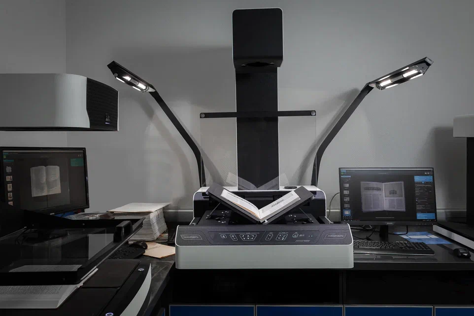 Ключевым элементом выступления стала презентация технических особенностей и возможностей планетарных сканеров ЭларСкан и ЭЛАР ПланСкан, включённых в реестр отечественного оборудования Минпромторга России. Эксперт подробно рассказал, какие конструктивные решения обеспечивают безопасную работу с ветхими, крупноформатными и сложными материалами, как устраняются блики и обеспечивается равномерная освещенность, а также каким образом современные технологии помогают проявлять угасающий текст, устранять дефекты и решать другие задачи профессиональной оцифровки.